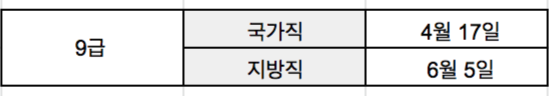 2021년 9급 국가직 시험은 4월 17일 토요일입니다.
