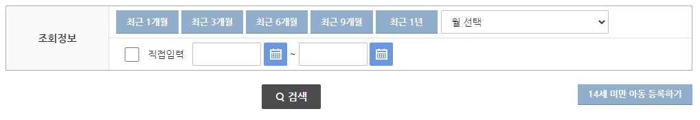 먼저 조회 기간을 정할 수 있는데, 조회일 기준 최근 1년까지만 조회가 된다는 점 참고하시기 바랍니다.