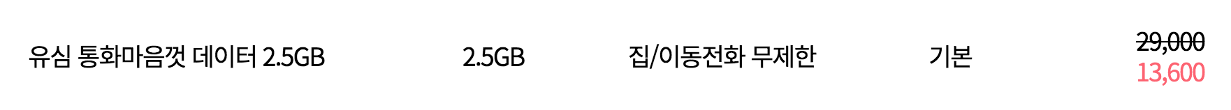 위 사진에서 13,600 원이 다른 조건 없이 프로모션이 들어간 월 요금이다.