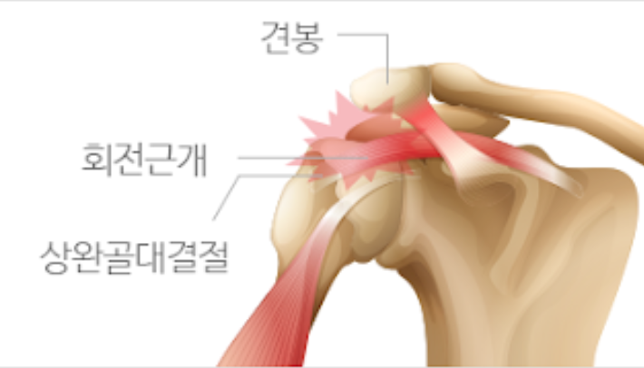 또한 어깨 회전 시 견봉 아래에서 삐걱삐걱하는 연발음이 들리기도 하니 유사 증상이 있는지 확인해봐야 합니다.